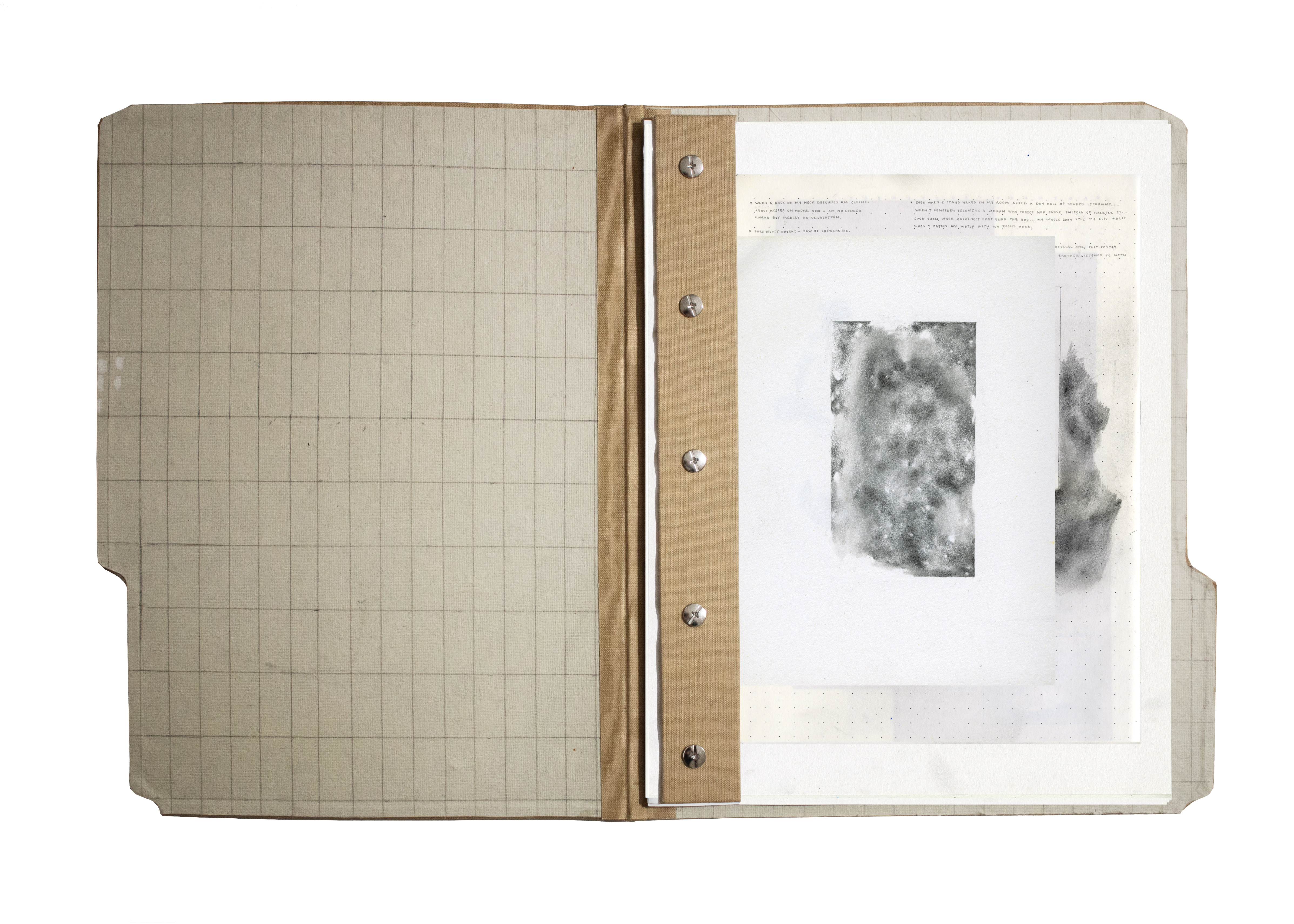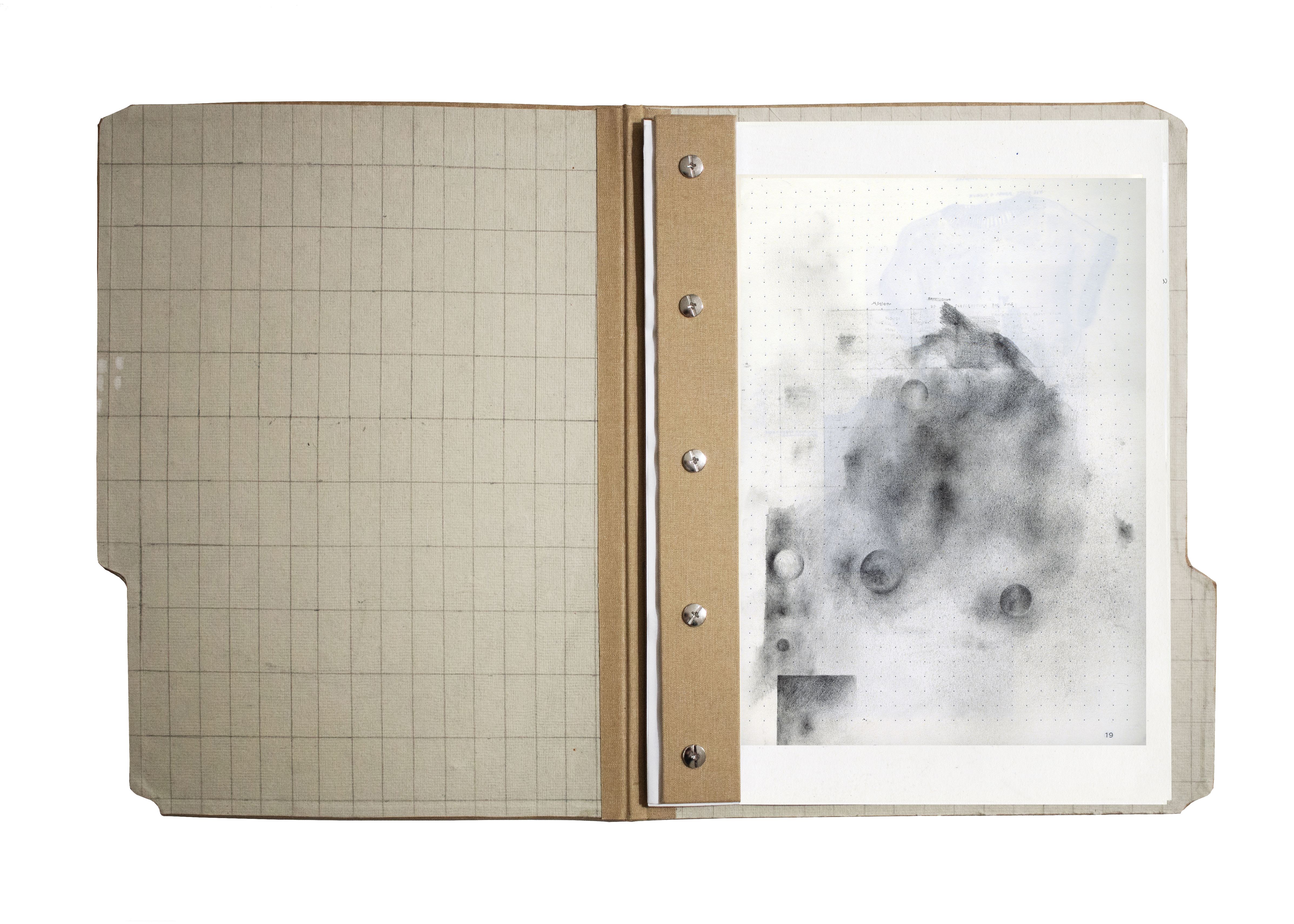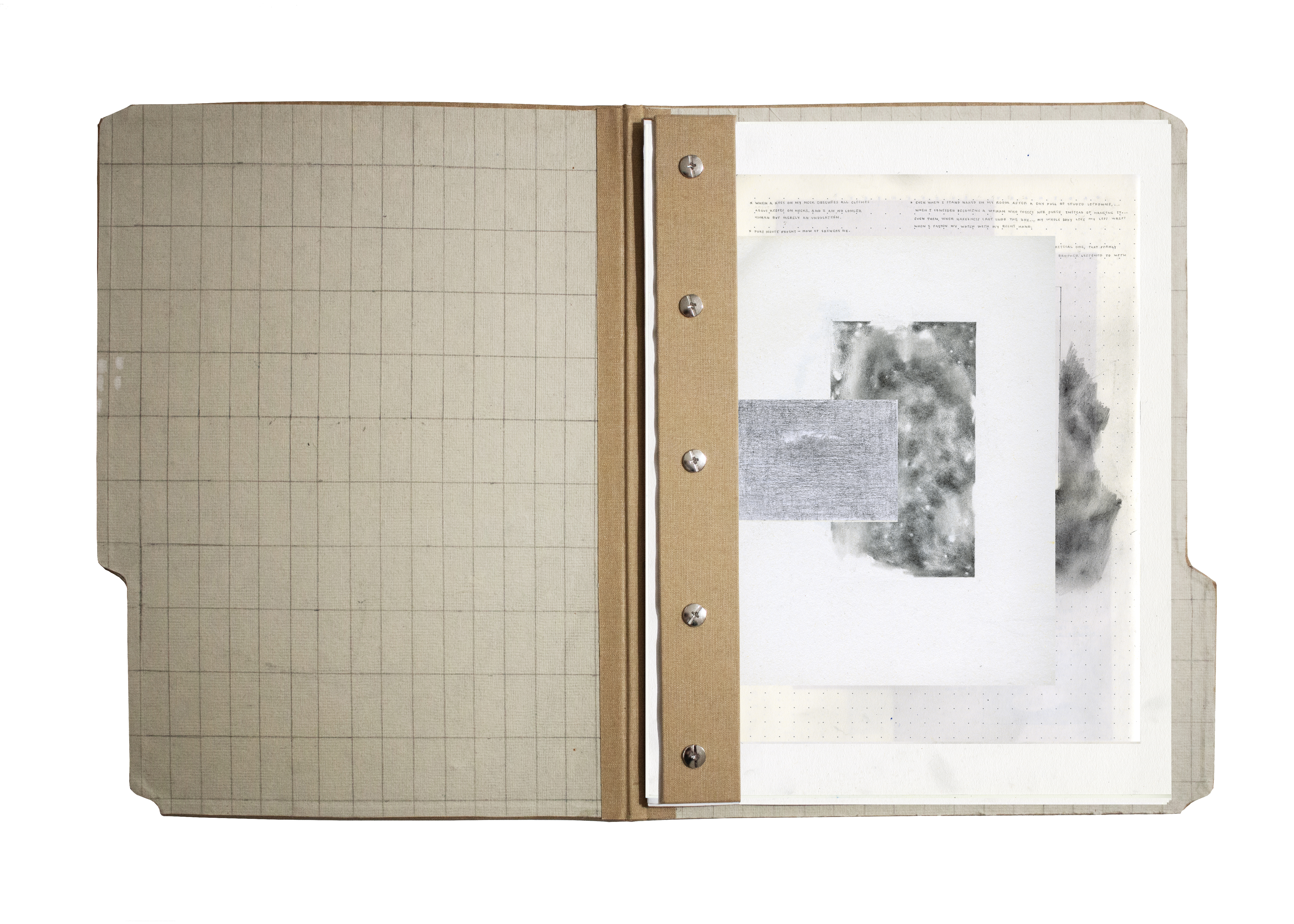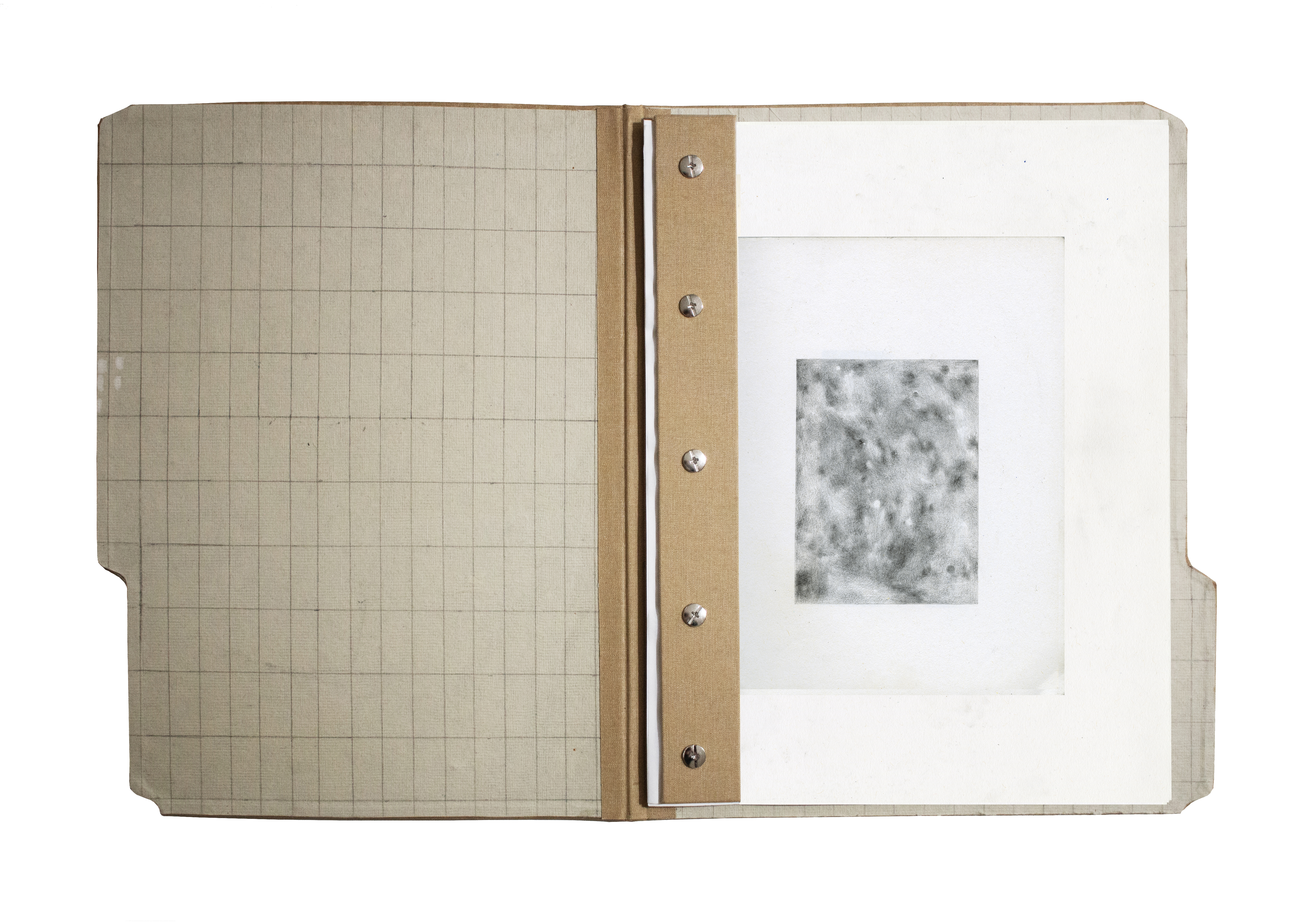 hard-bound artist book (manila folder fascimile), mulberry paper, graphite drawings