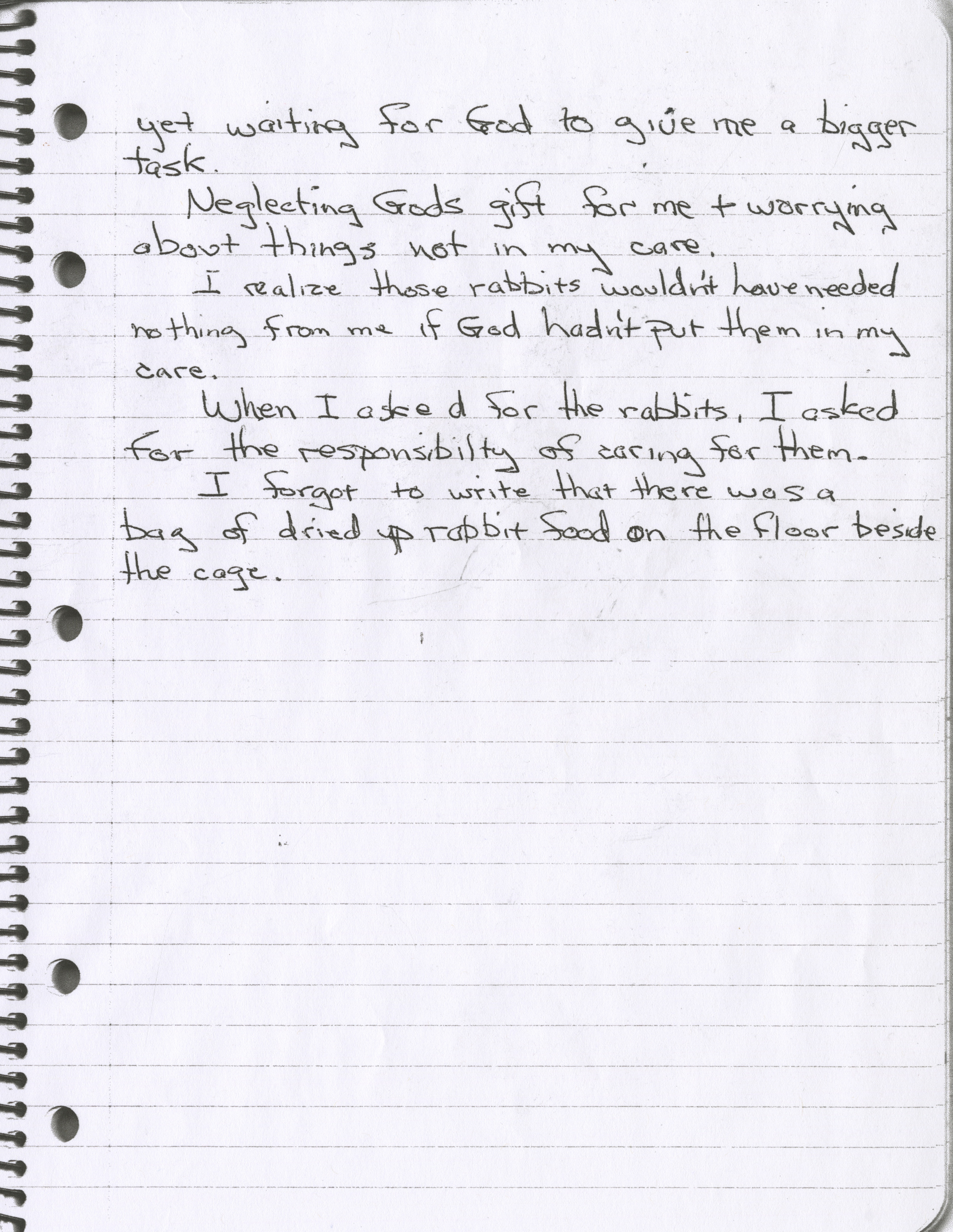 D: I don’t remember telling you kids the dream, but maybe there was something there that made you feel a certain responsibility toward rabbits.